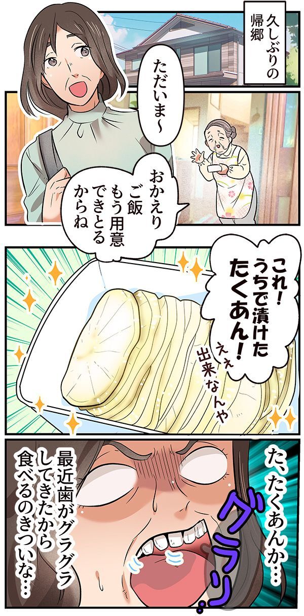 以前は歯がぐらぐらで食べるのも遅かったんだけど、今では普通にもぐもぐ全部いける!もっと早く知りたかったね!!