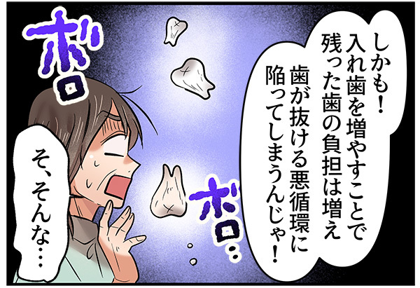 歯ぐきが弱った状態で入れ歯やブリッジを付けることが最後の決定打となってしまい、